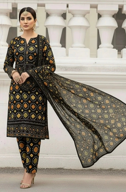 Aneelas Unstitched Emb Lawn3pc [WPR-23]