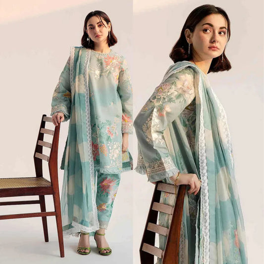 Embroidered Lawn Fabric (3Pcs) | LF-808