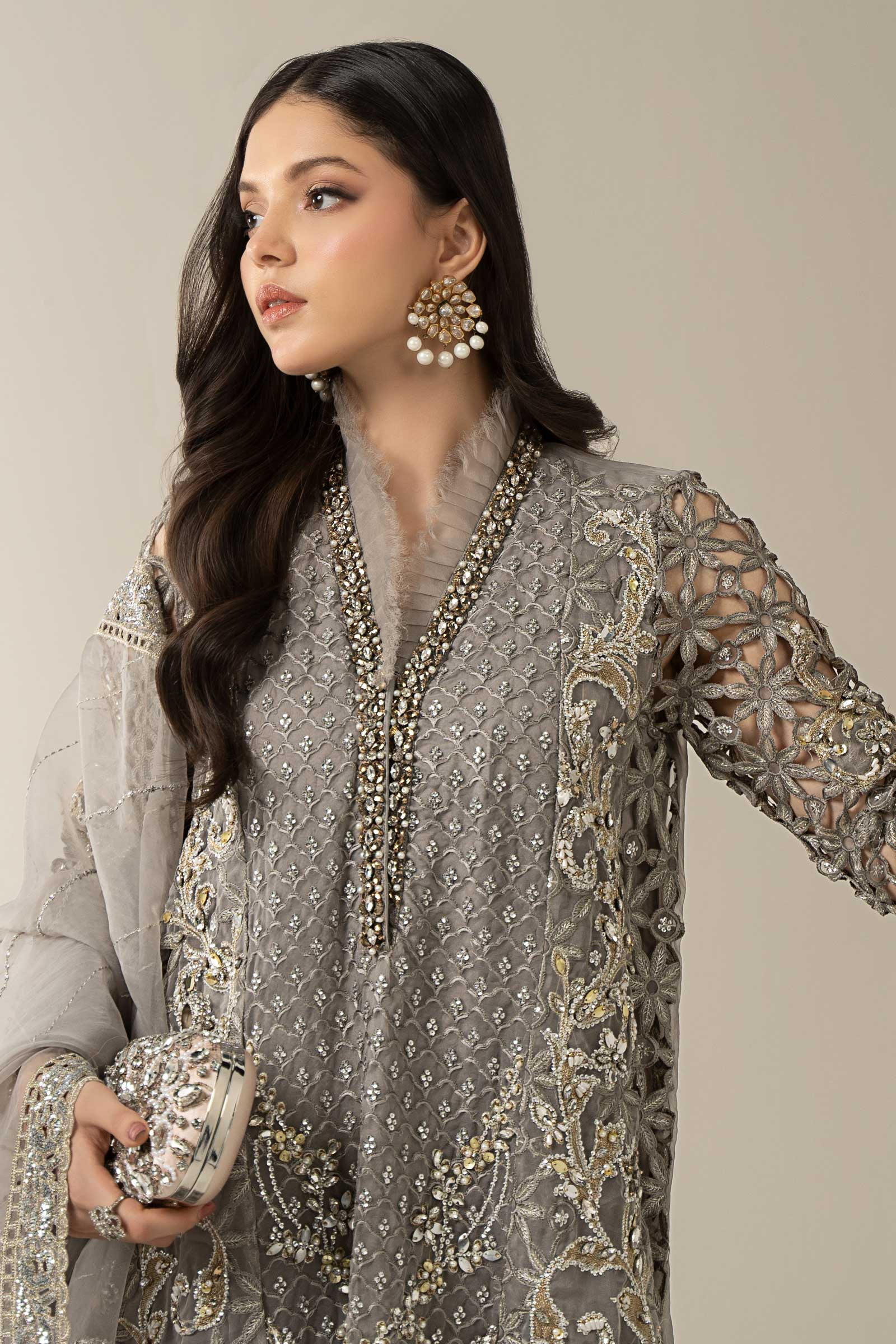 Embroidered Overlap Neckline With Luxury Hand Embellishment & Frey Organza Detailing