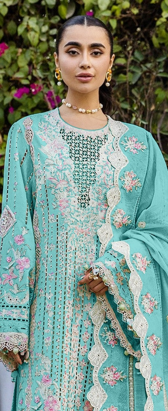 - Organza embroidered front, back & sleeve border, 2.5 meters