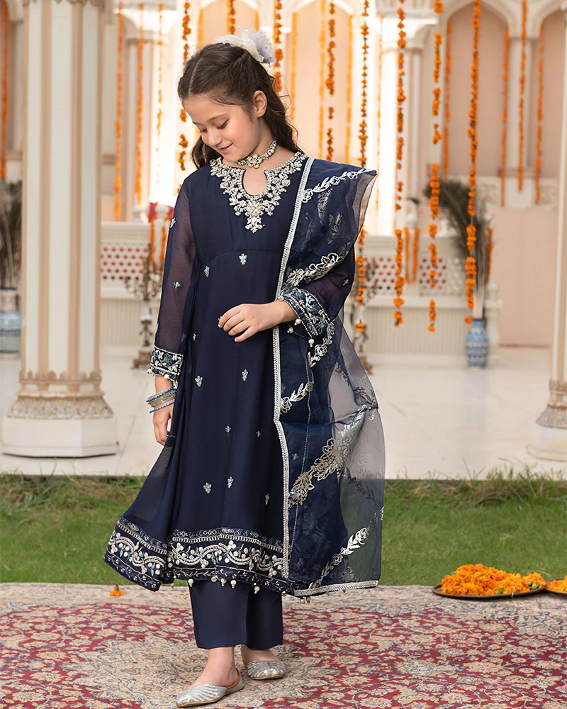 Complete the look with our organza screen-printed dupatta adorned with delicate lace detailing