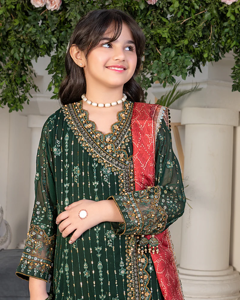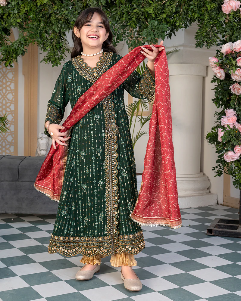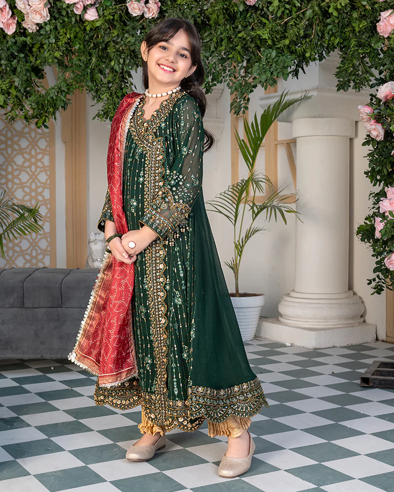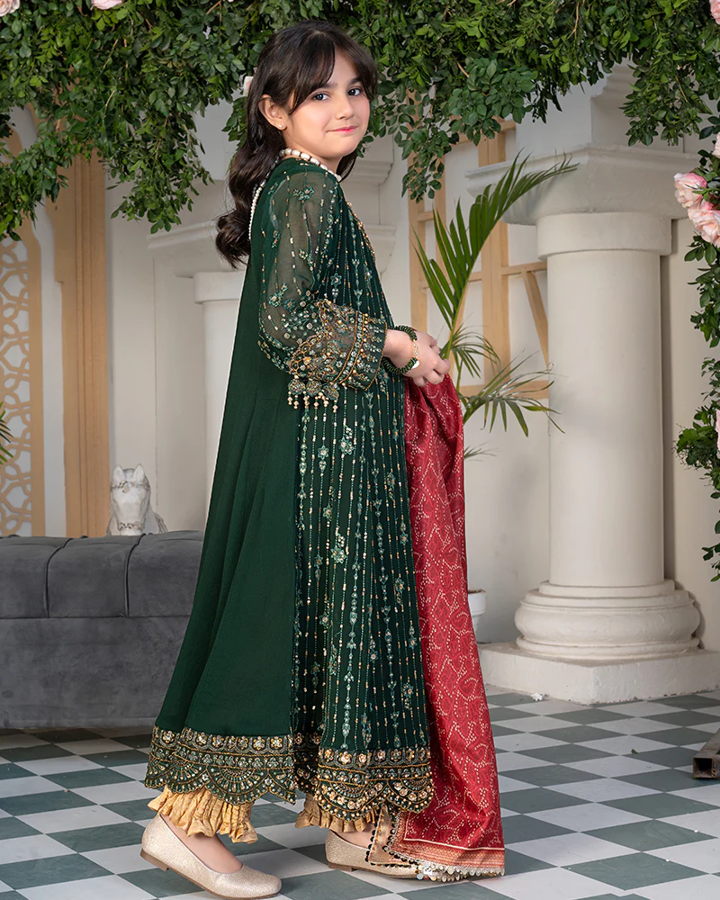 Chiffon embroidered andrakha frock enriched with gotta patti and pearls