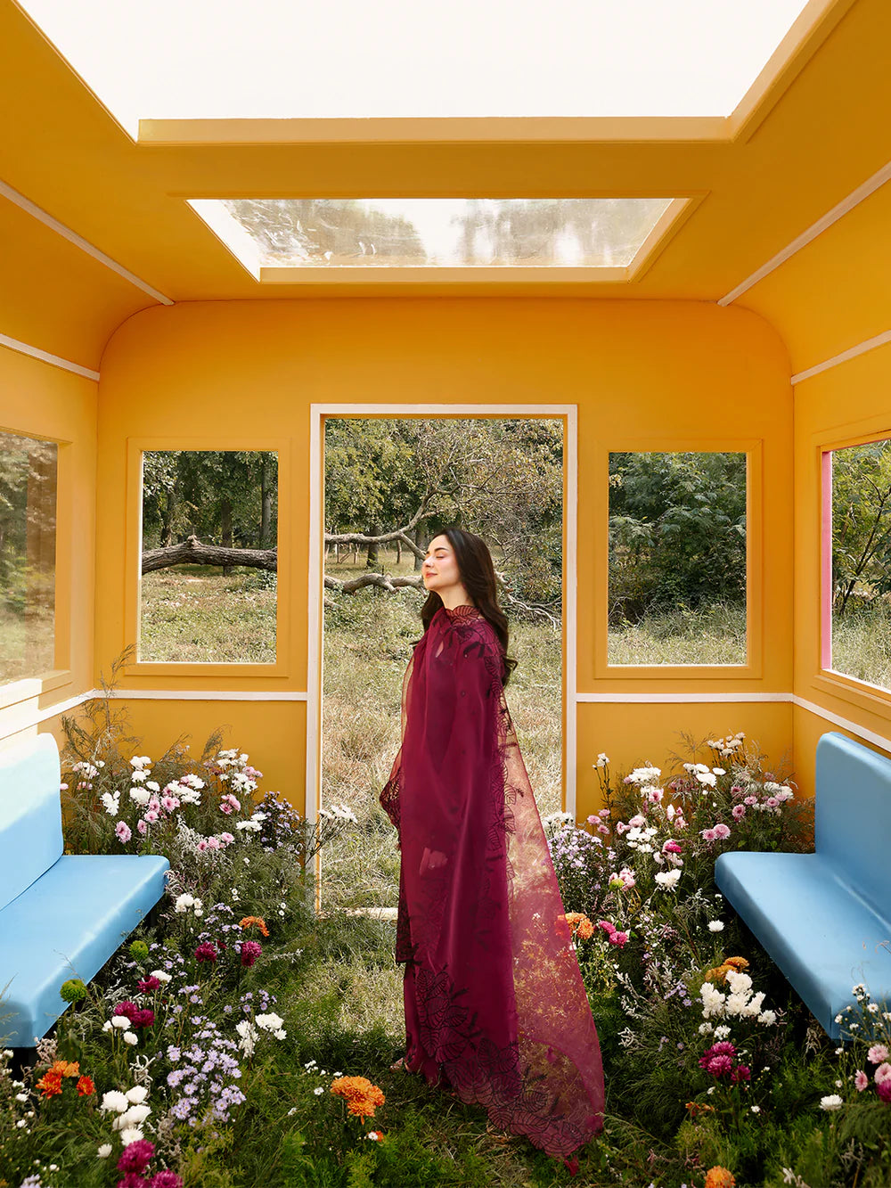 Completing the look is a cotton trouser, also embellished with spangle embroidery,