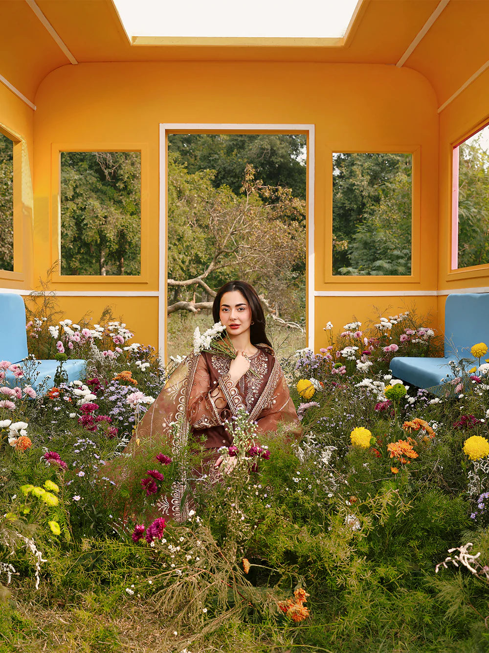 Organza dupatta is elegantly designed with screen printing, spangle embroidery, 5mm sequins, and delicate lace detailing.