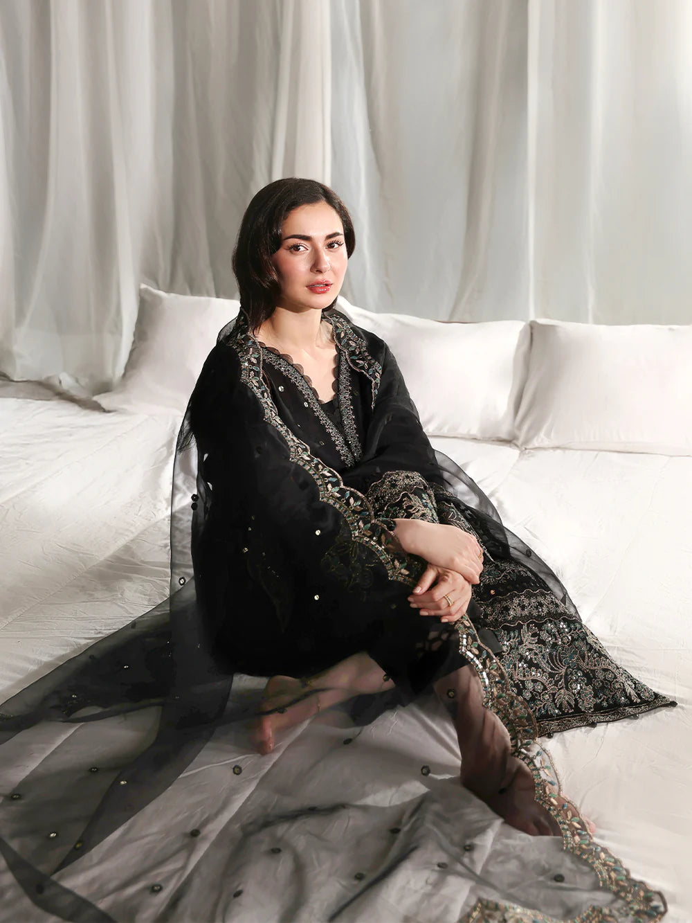 Organza dupatta, it is delicately embellished with sequin embroidery and 3mm spangles,