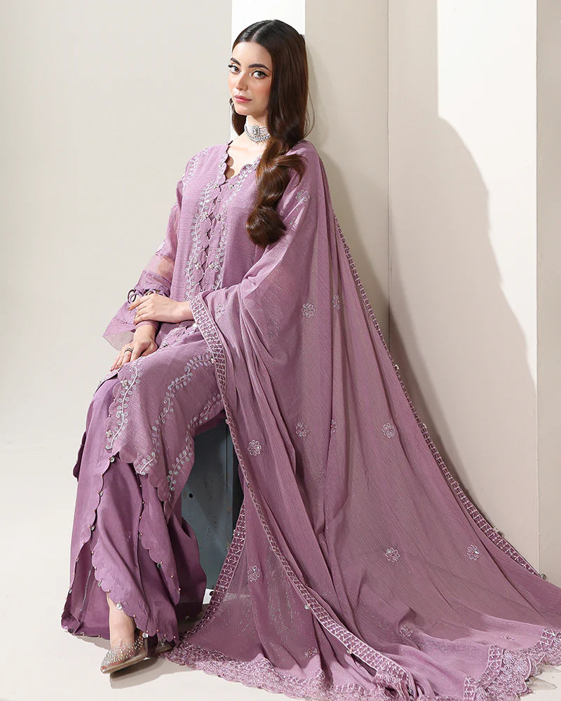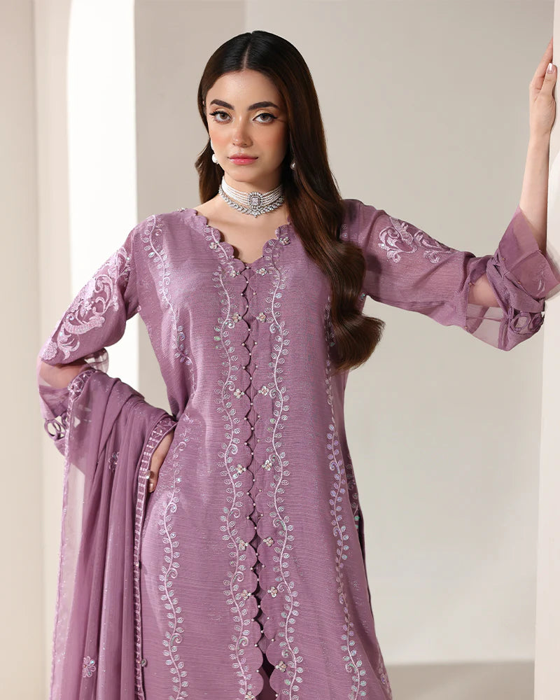 Crinkle zari chiffon dupatta spangle embroidery, delicate pearls, and charming seashells.