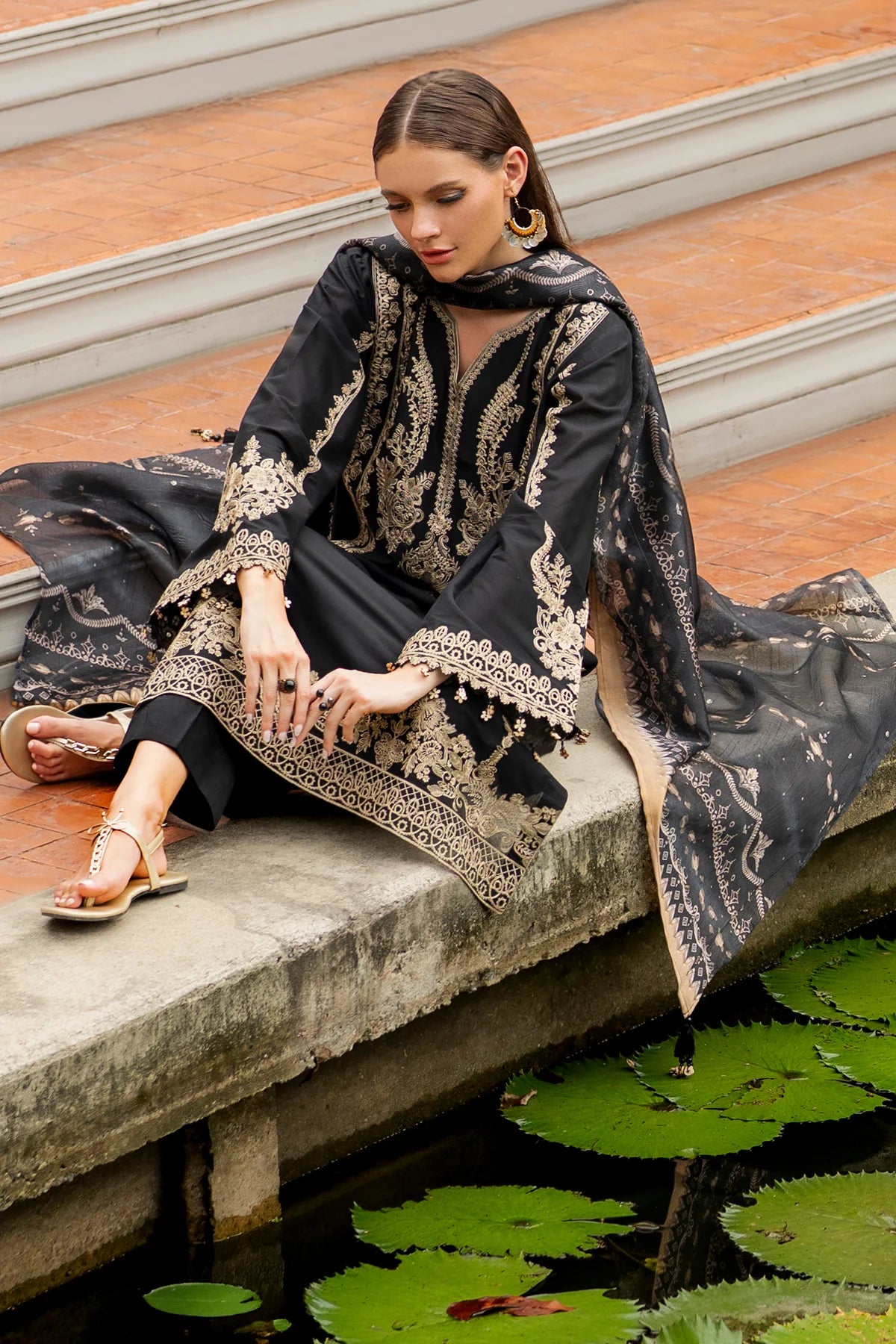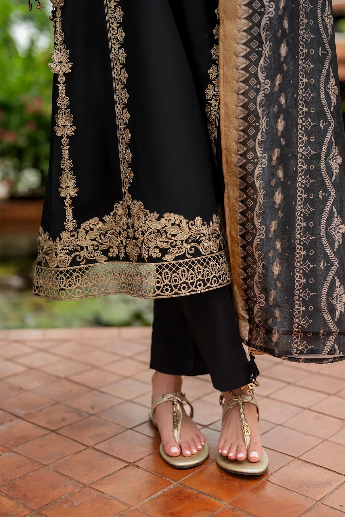 A warm ochre-toned ensemble beautifully designed with delicate cutwork embroidery on the sleeves and trouser hem, enhanced by subtle embroidered motifs across the shirt. Paired with a contrasting printed dupatta in soft beige and ochre hues, this outfit offers a graceful yet contemporary winter appeal.