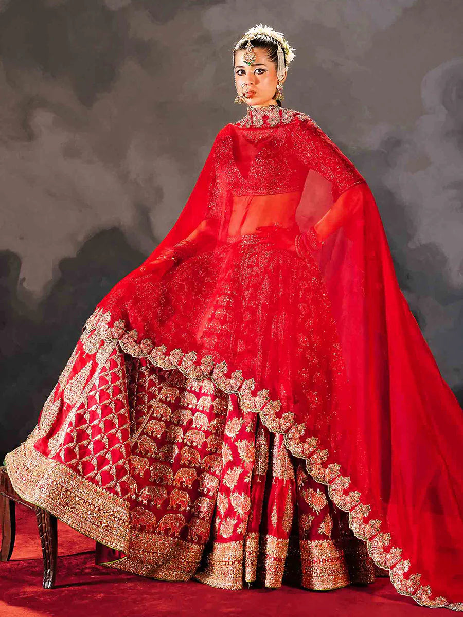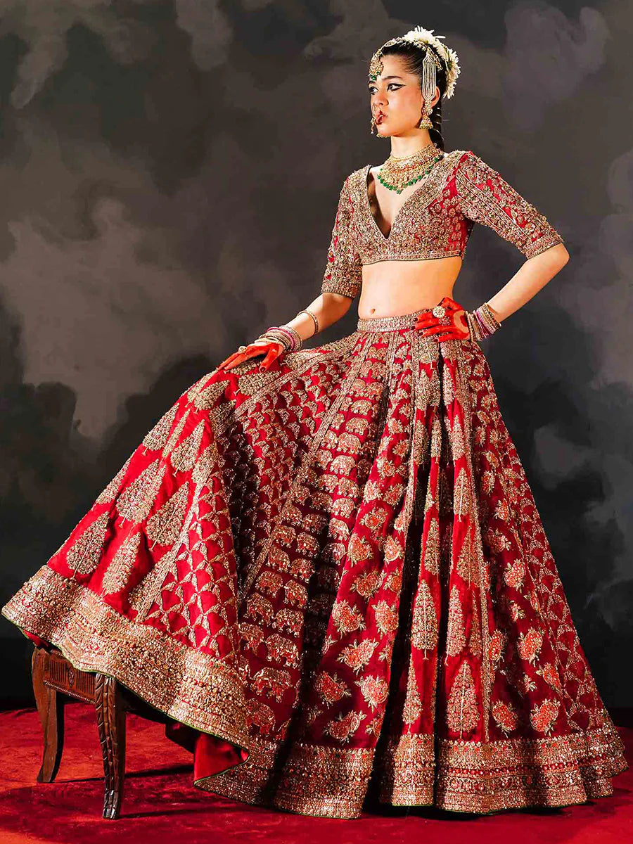 Introducing the exquisite red pure organza lehenga choli ensemble, featuring an impressive pure organza scalp cut work dupatta. Each stitch is carefully crafted by skilled artisans, resulting in a stunning and unique design.