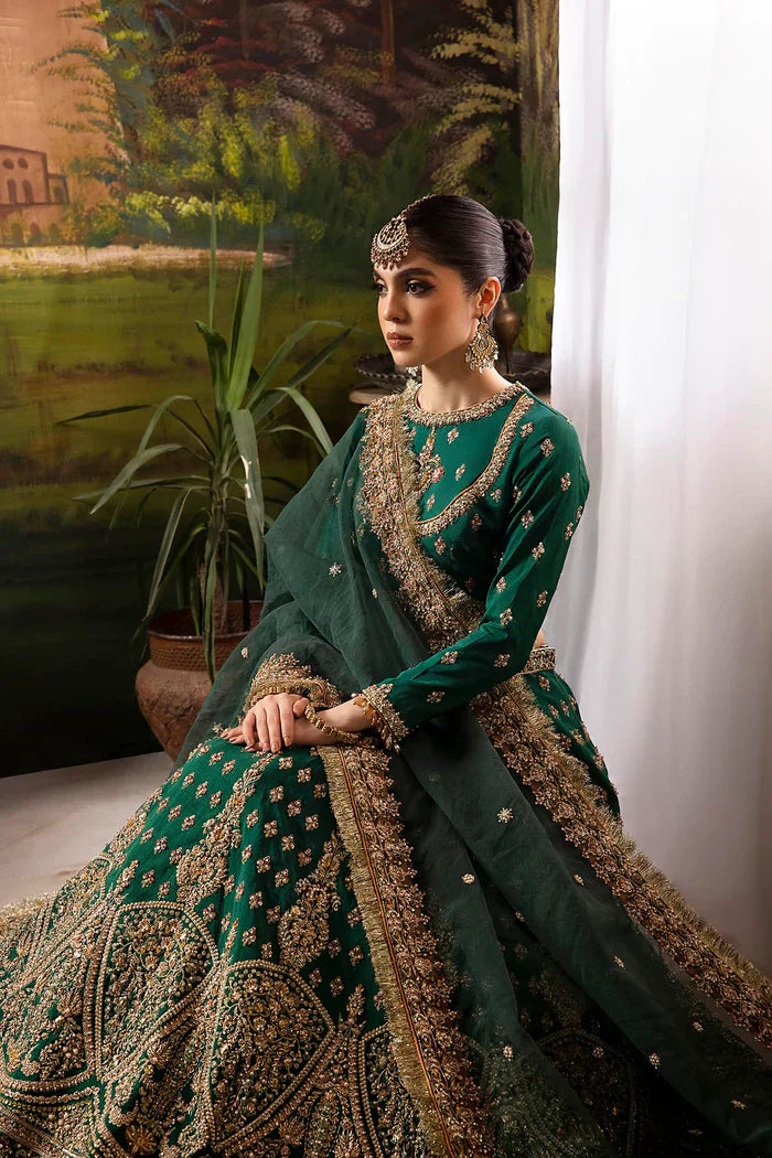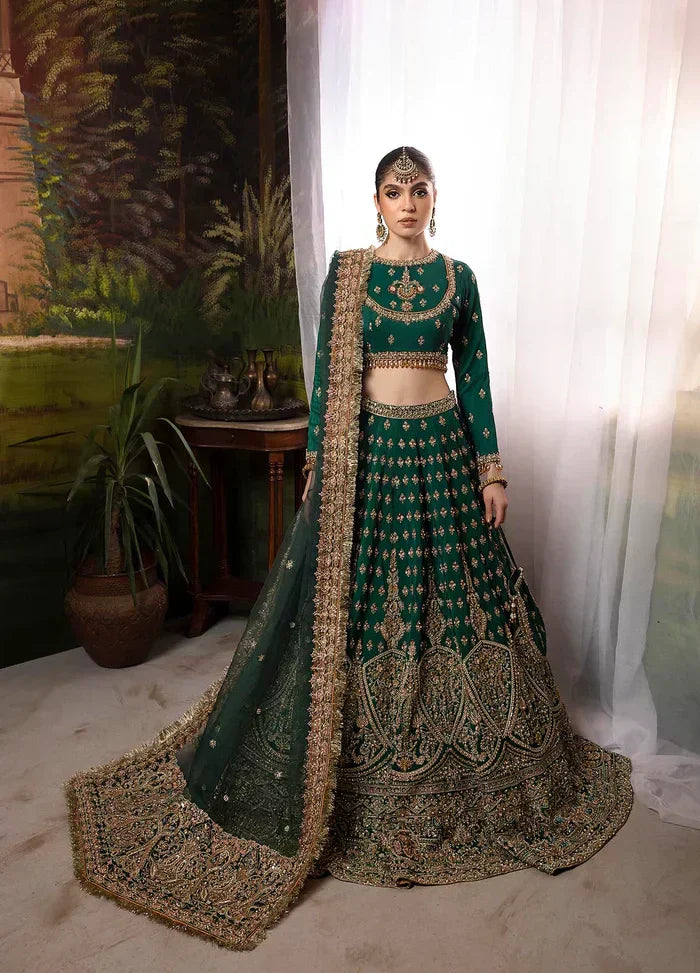 Convey the grace of a traditional bride in ‘Kiara’. A gracefully crafted green lehnga choli in koren raw silk is beautifully embellished with tilla and coral resham enhanced with gotta pearls and sequins details shaped into cascading forms of flora that flows beautifully making this a perfectly apt look for a statuesque look! Paired with a classically rich organza dupatta with heavy pallu work, this radiant outfit illustrates a timelessly regal look.