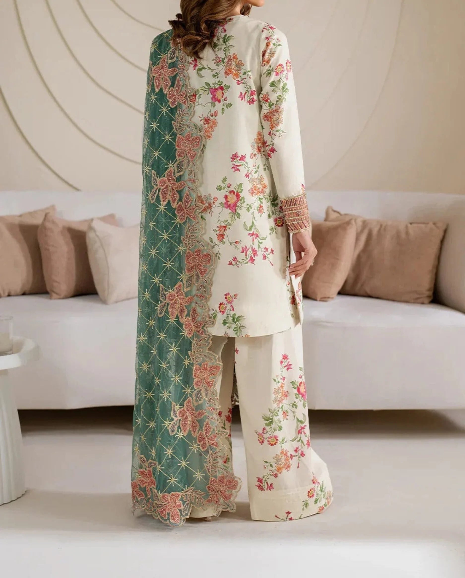Embroidered net dupatta (2.5 M) for a majestic, airy finish