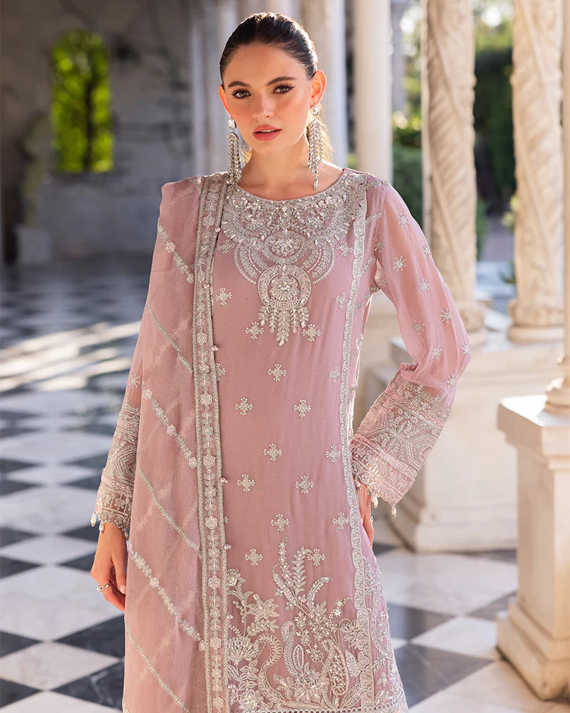Chiffon sequin embroidered dupatta adds a touch of elegance with its shimmering pearls.